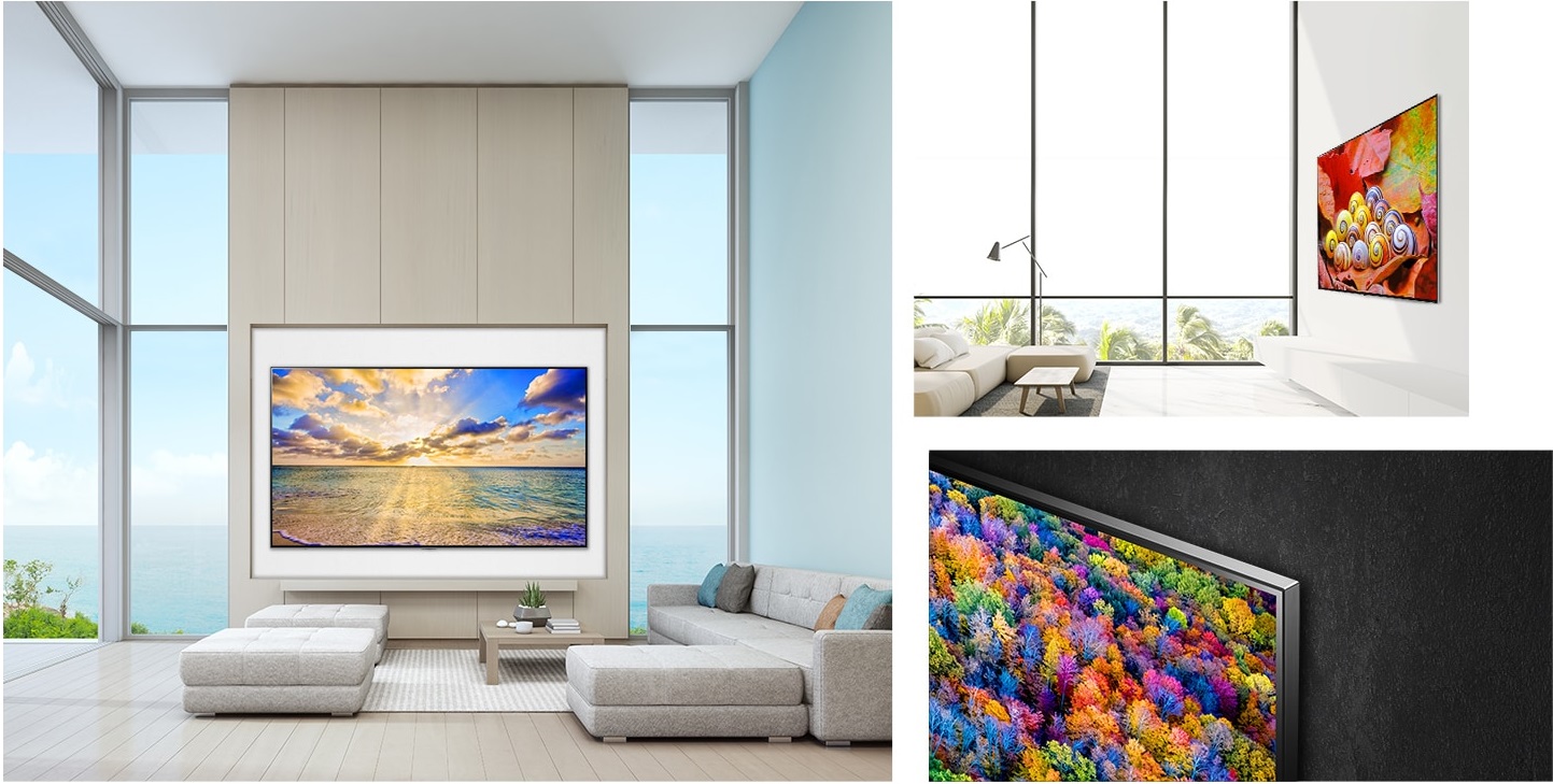 Телевізор LG NanoCell захоплює не лише якістю зображення, але і естетичною привабливістю. Тонкий мінімалістичний дизайн телевізора дозволяє закріпити його на стіні, зовсім як картину, розширюючи простір і роблячи його по-справжньому вишуканим.